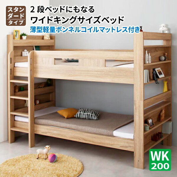 キーワード2段ベッド 木製 宮付き 分割可能 コンセント付き 子供部屋 バリエーション 2段ベッドシリーズ ●バリエーション一覧はこちら2段ベッドにもなるワイドキングサイズベッド Whentass ウェンタス 薄型軽量ボンネルコイルマットレス付き スタンダード ワイドK2002段ベッドシリーズ ●バリエーション一覧はこちら