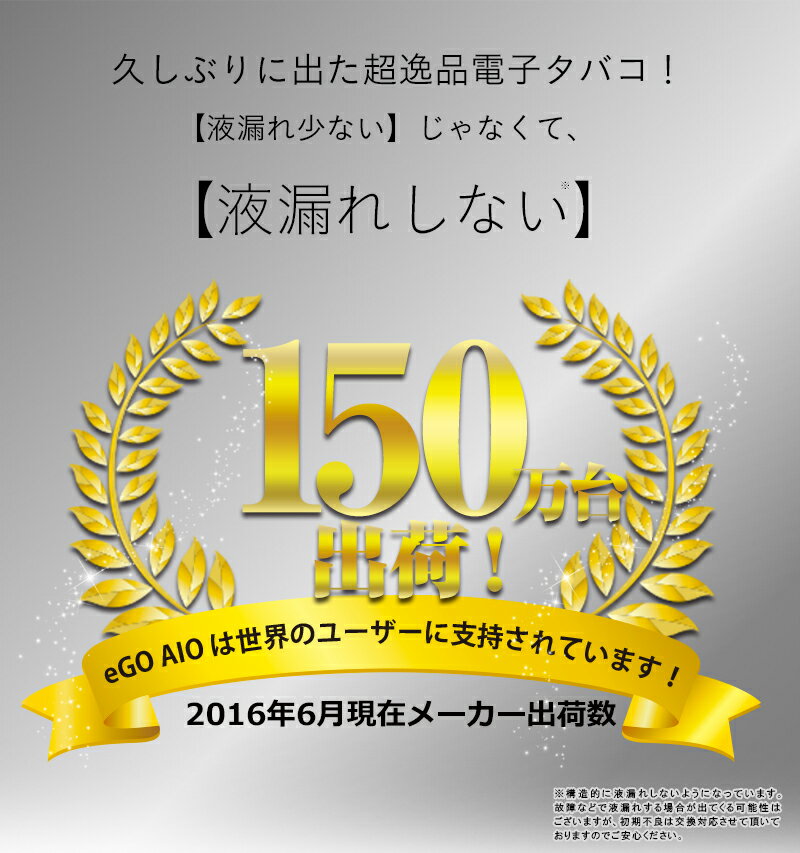 ぜひこの機会に本数を減らすだけでもトライされてみてはいかがでしょうか? 電子タバコ Joyetech eGo-AIO の詳細 ▼商品名電子タバコ 本体【メール便選択で送料無料】VAPE スターターキット 電子たばこ 電子煙草 ベープ ベイプ Joyetech 純正 正規品 eGo-AIO ジョイテック eGo AIO eGoAIO エゴエーアイオー エゴアイオ リキッド10本セット ▼スペック サイズ:ノーマルサイズ、細長いD16サイズ、太短いD22サイズの3種ノーマル…直径19×118.05 mmD16…直径16×158 mmD22…直径22× 106.5 mm カラー:▼ノーマルサイズブラック&グレー(黒灰)レッド&ホワイト(赤白)ブラック&ホワイト(黒白)ブラック(黒)シルバー(銀)▼D16サイズシルバー(銀)ブラック(黒)レッド(赤)ブルー(青)オレンジ(橙)ホワイト(白)▼D22サイズシルバー(銀)ブラック(黒)レッド(赤)ブルー(青)オレンジ(橙)ホワイト(白) メーカー:Joyetechバッテリー容量:1500 mAhリキッド容量:2.0 mlセット内容:Joytech社 エゴアイオ 本体×1マイクロUSBケーブル×1アトマイザーヘッド×2スパイラルマウス×1シリコンマウス×1英語取扱説明書×1*当店オリジナル*わかりやすい日本語説明書×1国内成分検査済Somebody's VAPE Liquid×10本 ▼関連商品一覧 交換用コイルはこちら専用ケースはこちら保護用シリコンカバーはこちら対応リキッドはこちら本体のみのご購入はこちら 電子タバコ(VAPE)につきまして▼こんなメリットがありますニコチン・タールの健康被害を気にせず吸え、たばこに比べコストパフォーマンスも良いのでたばこ代の節約になります。