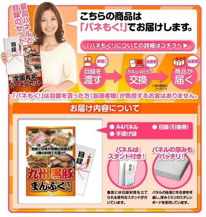 【メール便対応2個】景品目録ギフト 景品ならパネもく! 九州黒豚まんぷくセット 目録・A4パネル付 景品 ギフト 景品 目録 景品 パネル イベント 目録 景品パーク