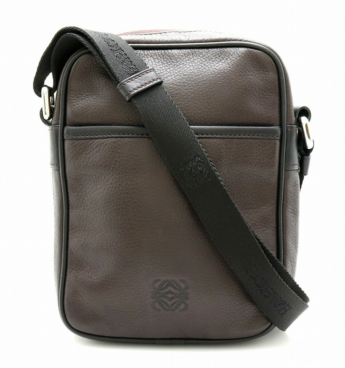 【バッグ】LOEWE ロエベ アナグラム レザー クロスボディーバッグ ショルダーバッグ 斜め掛けショルダー ダークブラウン 茶 ブラック 黒 メンズ 345 79 【中古】【k】